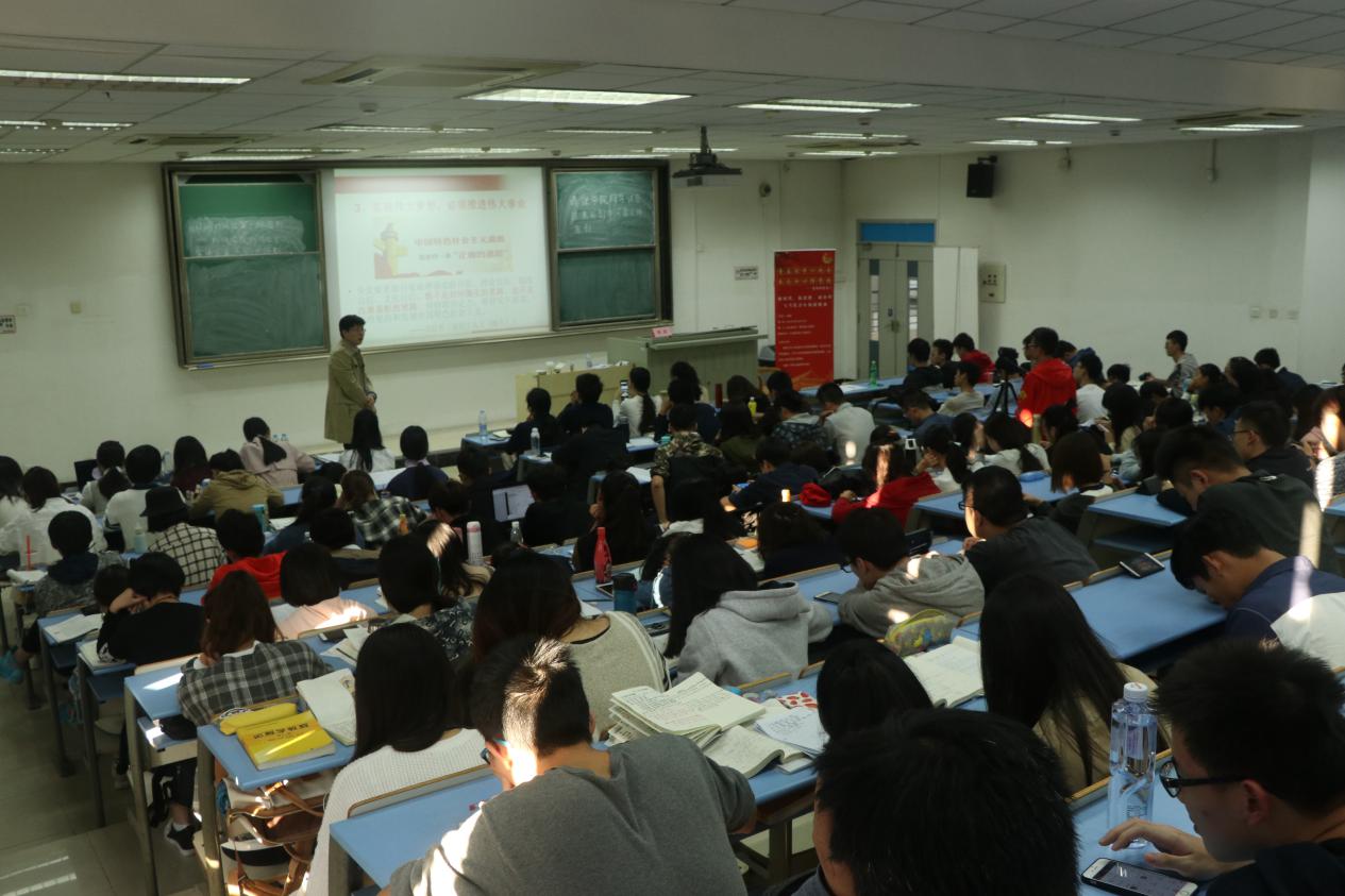 讲座伊始,陈超与同学们共同回顾了党的十九大历程,并围绕着“新时代:标注历史新坐标”“新使命:推进‘四个伟大’”“新思想:领航新时代”“新征程:开启历史接力赛”等四个方面对党的十九大报告进行了系统深入的讲解和分析。陈超指出,党的十八大以来,中国在经济建设、全面深化改革、全面从严治党等十大方面都取得了巨大成就,中国离世界发达国家的差距正不断缩小,我们要牢记使命、不忘初心,在中华民族伟大复兴的历史征程中贡献青春力量。在谈到中国共产党对于中国特色社会主义现代化建设的重要性时,陈超以当今巨大的反腐力度为例说明了中国共产党对于自身建设的重视。他特别提到:“没有一项使命,比实现人民共同梦想更加崇高,只有坚持中国共产党的领导,才能完成当今时代的新使命”。