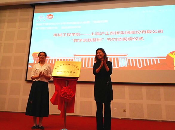 会上,机械工程学院副院长徐洋与上海沪工焊接集团股份有限公司人力资源总监唐志娟分别代表学院和企业签订了双方合作协议,并共同为学院“教学实践基地”揭牌。会议还聘请了学院首批“领雁计划”科创导师,进一步提升学院学术与就业的核心竞争力。机械学院党委副书记李宁蔚启动了“党建引领 学习能力提升年”活动。