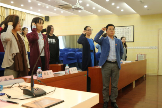 全体党员重温入党誓词,互联网+供应链研究中心党支部书记吴勇领誓。活动最后,在座11、12月的入党同志集体庆祝入党“红色生日”。