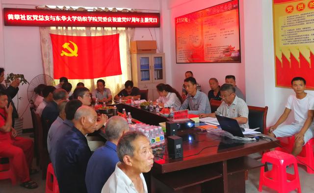 党建引领,支部“共建”,夯实基层党组织战斗堡垒。充分发挥学校党建优势,主动对接农村基层党建工作实际需求,通过网络连线的方式开展两地支部共建活动。计算机学院学生党支部与学校干部挂职担任第一书记的黄草社区党总支开展“两学一做”共学共建主题党日活动,邀请黄草社区抗战老兵、基层老干部等优秀党员为学生党员讲党课;纺织学院党委与黄草社区党总支开展“不忘初心、牢记使命——庆祝建党97周年主题党日活动”,举办“悟初心、守初心、践初心”主题党课,并为黄草老党员过政治生日;化工生物学院“小红星”新时代国情宣讲团临时党支部与黄草社区党总支联合开展“脱贫攻坚与乡村振兴”主题党日活动,并由研究生党员为农村党员上党课。两地新老党员主题党课、政治生日、朋辈教育、互动交流和重温入党誓词等活动,创新并丰富了基层党建工作的形式和内容,有效提升了基层党组织的凝聚力和战斗力。