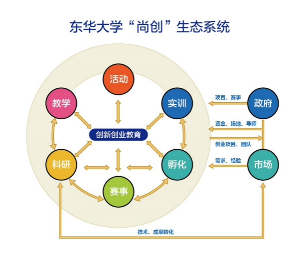 经过多年不懈探索,“尚创”生态系统为“三全育人”背景下的高素质创新创业人才培养,提供了一种“东华模式”。近三年来,该校有209名应届毕业生自主创业,其中本科生83人,硕博126人,79.90%的项目为先进制造业、现代服务业、文化创意创业。浇花浇根,育人育心,以创业成就自我的东华创客们牢记社会使命,创业成功不忘回报社会,以创业带动就业,仅丁建勋、朱汉宝、沈炯、王星、王浩平等5个毕业生团队的创业企业就带动就业3000余人……
