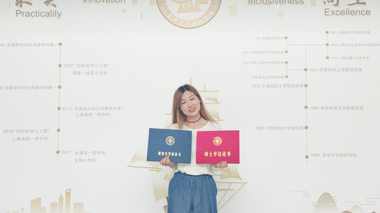“小纤维,大学问。”随着对于专业学习的深入,黄姝婷也慢慢改变了自己对于纺织科学的认知,从懵懂到热爱,从热爱到专研。她在科研上投入了大量的时间和精力,研究生二年级就在科学引文索引所收录的《纺织研究杂志》发表了自己的研究成果。