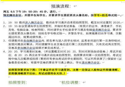 学校高度重视此次期末考试工作。为贯彻落实教育部“在线教学与线下课堂教学质量实质等效”的要求,结合学校在线教学和疫情防控工作的实际情况,学校领导高度重视,在学校的统一部署下,教务处多次召开本科教学工作会议、线上考试工作专题会等,研判线上期末考试工作,发布了《关于做好2019-2020学年第二学期本科生期末课程考核工作的通知》,对线上期末考试工作做出了明确要求,提出“应考尽考”的基本原则;成立考试工作小组,落实各项工作,制定线上考试规章制度,如《线上考试考试规则》、《线上考试监考老师须知》、《线上考试学生须知》等,倡导学生诚信考试,确保线上考试有章可循。教师教学发展中心加强任课教师线上考试进行培训,考试工作小组通过在线教学技术群提供7*14小时线上考试技术支撑,制定线上考试各种突发预案。