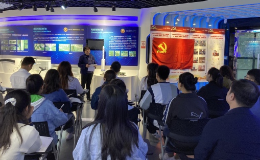 会后,蒋宏潮还参加了材料学院21级学硕第一党支部开展的“弘扬伟大建党精神,加快推进科技自立自强”主题党日活动,上海市“双带头人”教师党支部书记、材料学院碳纤维团队带头人陈惠芳以“逐梦百年正风华,接续奋斗正青春”为主题为学生党员带来了一堂沉浸式微党课。