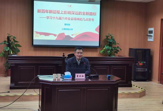 11月30日,人文学院党委邀请上海财经大学党校副校长、党委组织部副部长、党委宣传部副部长、首批上海市马克思主义理论教学研究中青年拔尖人才曹东勃担任主讲人,作“新百年新征程上影响深远的全新路标——学习十九届六中全会精神的几点思考”专题报告。讲座由人文学院党委书记韩哲宇主持,全体师生党员共同参与。