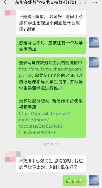“我明天早上就要上课了,发现有学生没有在名单,怎么办?”“江湖急救!学生进课堂说没有显示上课状态,怎么解决?”……嘀、嘀、嘀……“您稍等,您先截屏给我看下,马上就解决!”